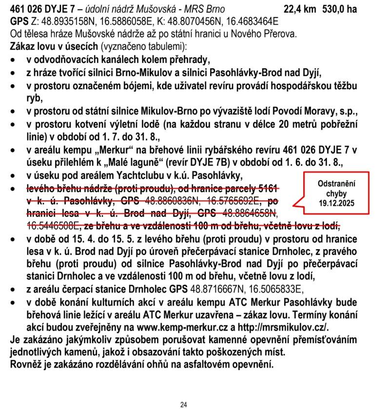 V Bližších podmínkách výkonu rybářského práva (BPVRP platné od 1.1.2026) pro mimopstruhové revíry je na straně 24 uvedena chyba v následujícím odstavci: